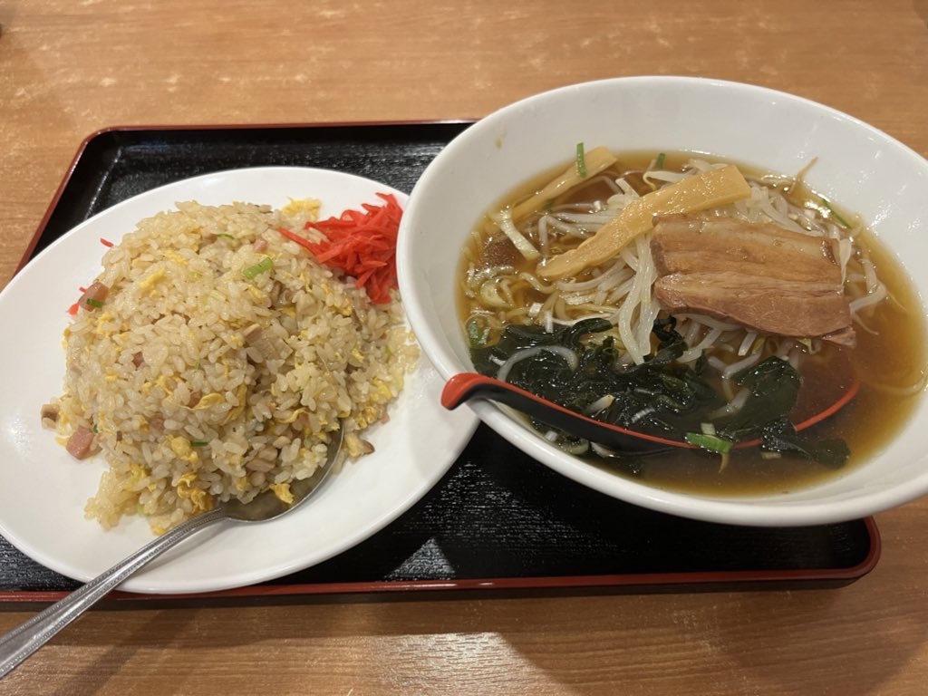 から揚げ定食にラーメン。