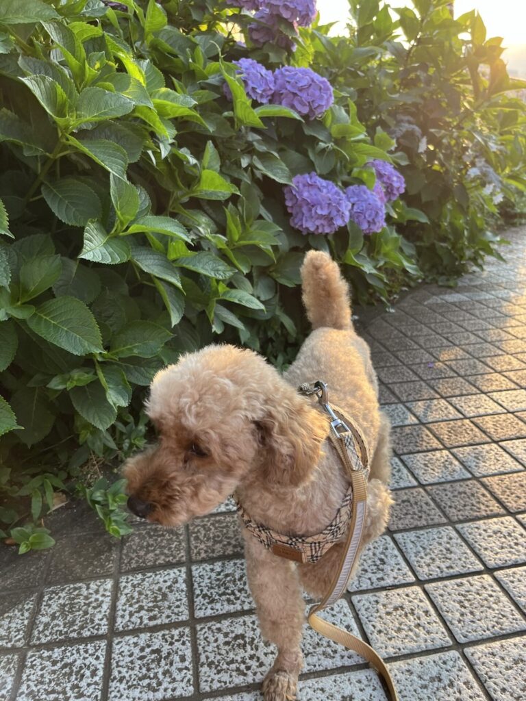 写真は梅雨らしく紫陽花の前で。