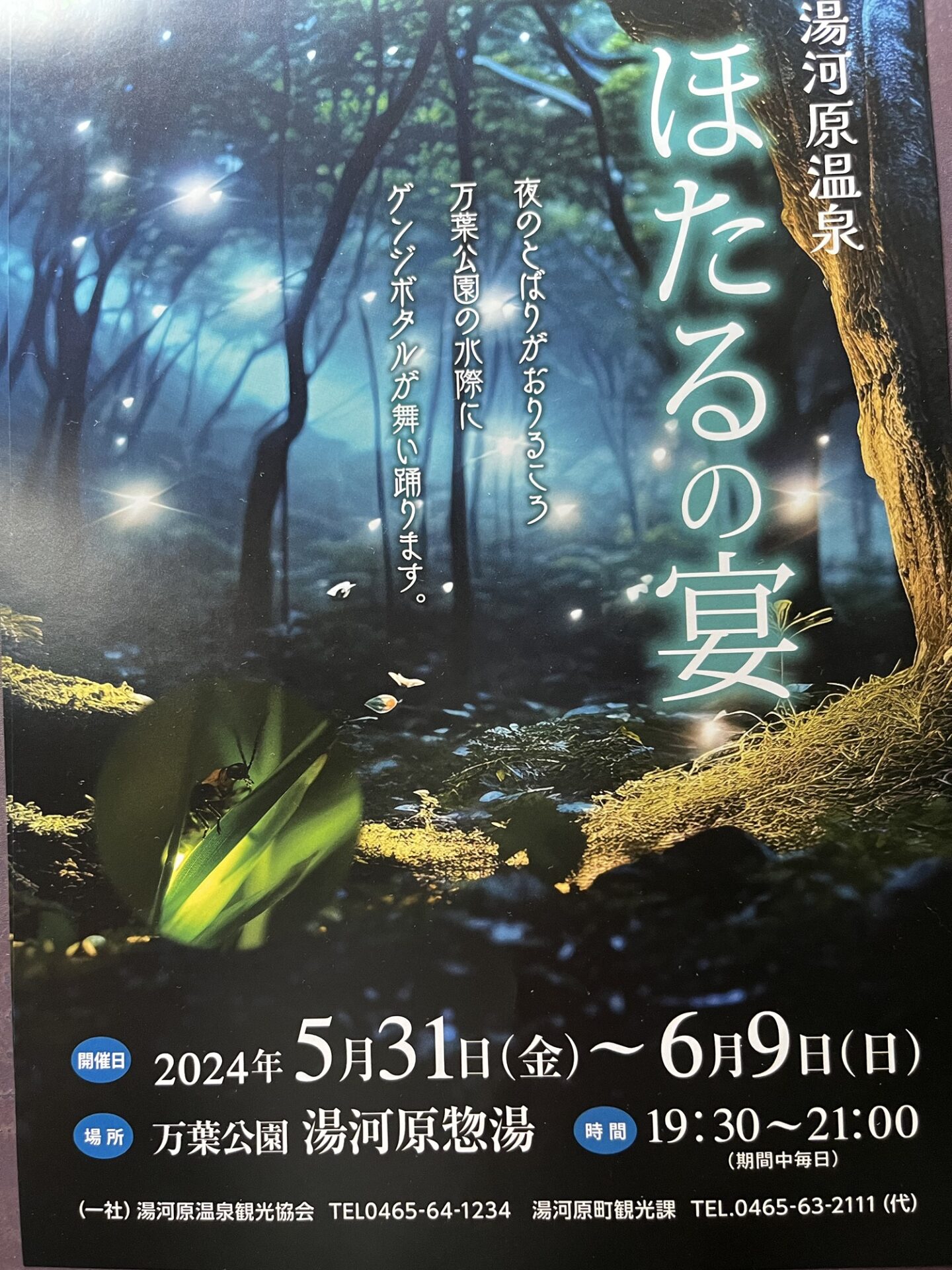 ほたる見るなら旅館まんりょう 2024年5月29日 お知らせ ほたるのイベントの開催日前ですが既にたくさんのほたるが飛んでます! 前日の嵐のような雨のあとでも元気元気です。 ほたるの会場に一番近くの旅館は当館になります。 動画の中で少しですが光が動いているのがほたるになります。 湯河原温泉ほたるの宴 湯河原温泉ほたるの宴